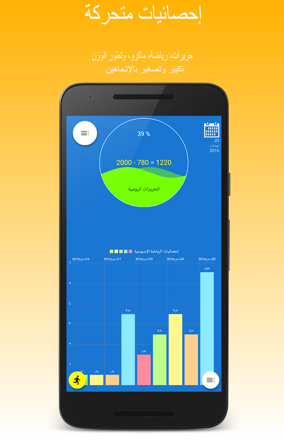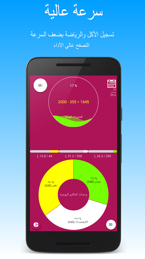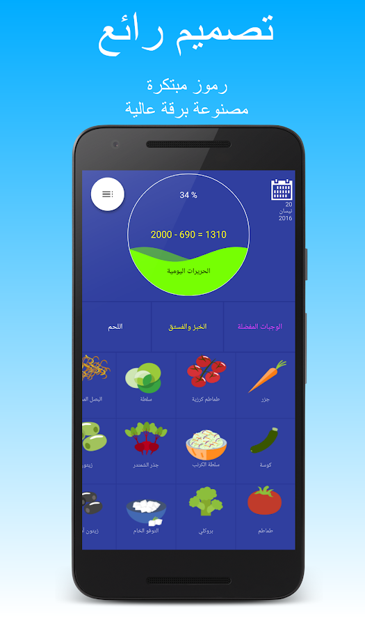 اسهل واسرع برنامج عربي لاختيار وتسجيل الأطعمة، المشروبات والتمارين الرياضة.